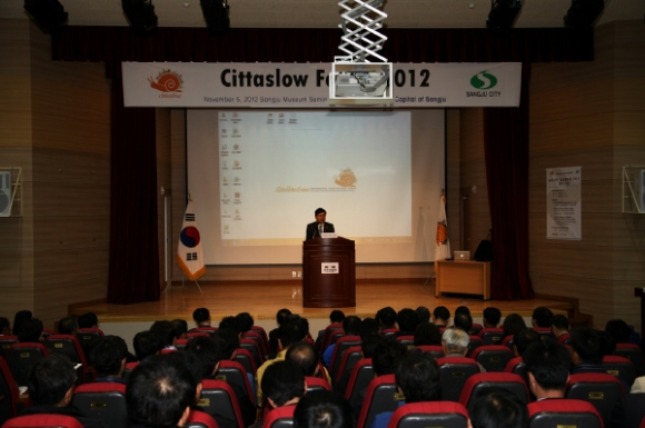 상주시에서는 농업의 수도 상주의 슬로산업(농업) 경쟁력 강화를 위해 11월 5일 상주박물관 세미나동에서 국내외 포럼 발제자 및 한국 슬로시티본부․슬로시티 인증지역 관계자, 농민단체 회장단 등 150여명이 참석한 가운데 “슬로시티 글로벌포럼 2012” 를 개최했다.