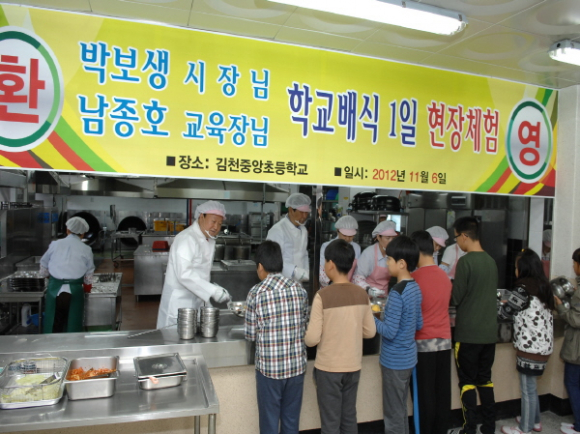 박보생 시장의 이날 방문은 올해부터 면 지역 초ㆍ중학교에 대해 전면적으로 실시하는 무상급식의 운영 사항 확인과 안전한 급식관리를 위해 김천교육지원청과 함께 실시한 것으로 남종호 김천교육지원청 교육장, 김칠용 중앙초등학교장, 학부모대표 등이 함께 했다.