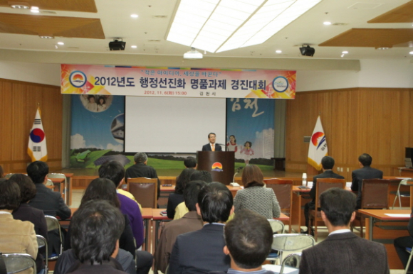 김천시(시장 박보생)는 지난 6일 김창곤 부시장을 비롯한 공무원 150여명이 참석한 가운데 시청 3층 강당에서 “2012년도 행정선진화 명품과제 경진대회”를 개최했다.