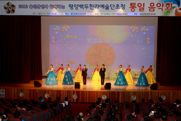 이번 음악회는 민주평통 울진군협의회 자문위원, 울진군수, 울진군의회 의장과 각급 기관단체장, 지역주민 등 400여명이 참석했으며 민주평통 소개와 함께 평양백두한라예술단 초청 공연이 이어졌다.