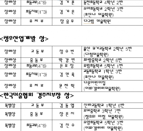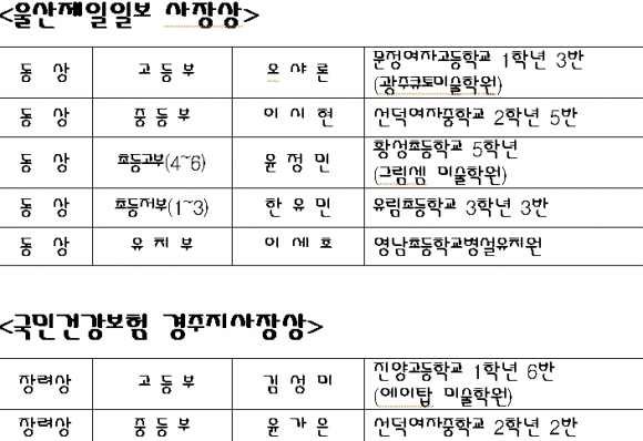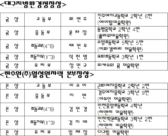 자연환경사랑운동본부가 주최하고 사단법인 환경운동실천협의회(총재 김헌규) 및 자연보호 형산강 살리기 봉사회가 주관한 제8회전국청소년환경사생대회 공모전 시상식이 11월10일 경주 청소년수련관에서 개최했다. 총 2,500점이 출품되어 이 가운데 대상, 최우수상, 금상, 은상, 동상 장려상, 특별상 70점이 입상되어 시상식과 그림 전시회를 가졌다.