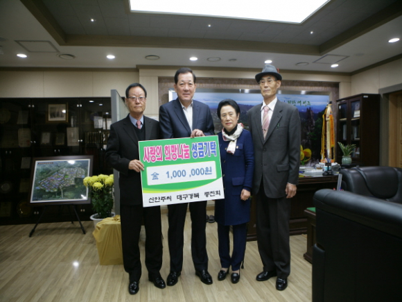 성주군수(김항곤)는 신안주씨 화수회 회원들의 나눔 실천에 고마움 을 표시하고 신안주씨 성주화수회의 무궁한 발전을 기원했다. |