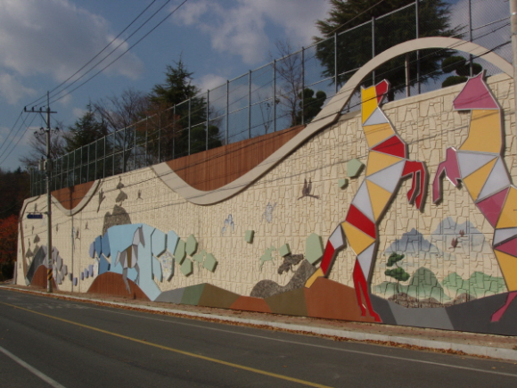 김영석 영천시장은 “이제껏 도외시한 콘크리트 옹벽이 자연을 주제로 시민들과 소통하는 따뜻한 예술작품으로 승화되었다며 지역의 가로경관 이미지를 새롭게 바꾸어 가는 출발이라” 밝혔다. |