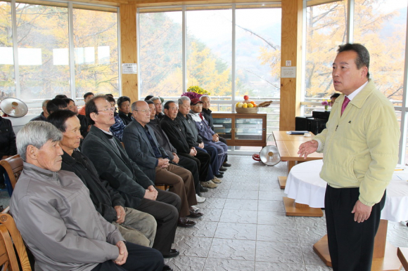이현준 예천군수는 16일 11시 백석리 흰돌 녹색농촌체험마을에서 2013년도 곤충나라 사과테마공원 조성과 과실 기반정비사업 대상지 주민 40여명과 간담회를 가졌다.
