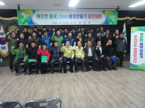 용암면(면장 도재용)에서는 11월 15일(목) 오후 2시에 면사무소 회의실에서 김항곤 성주군수, 김명석 성주군의회의원을 비롯하여 기관사회단체장, 환경지도자, 이장, 참외작목반 대표 등 150여명이 참석한 가운데 깨끗한 들녘, Clean 용암 만들기 결의대회를 성황리에 거행했다.