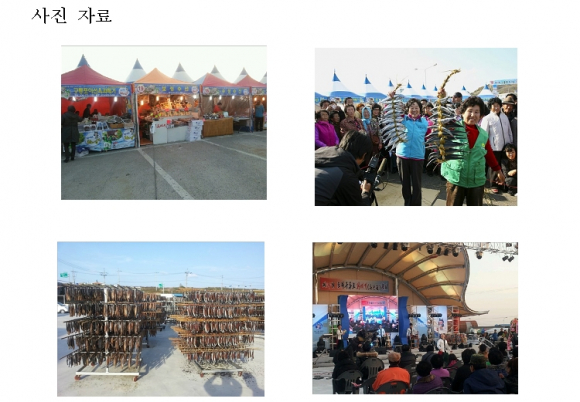 시 기 : 2012. 11. 17(토) ~ 18(일) 장 소 : 경북 포항시 구룡포항 과메기문화거리(아라광장) 주최/주관 : 포항 구룡포과메기사업협동조합 행사 규모 : 1만5천여명(2011년 기준)/ 판매금액 1억여만원 주요프로그램 - 축하행사 : 축하공연, 대북공연, 남미 전통 현악연주,, 축시낭송 - 상시행사 : 특산품 판매 및 시식회, 특산물 홍보 - 참여행사 : 특산품 퀴즈대결, 특산품 깜짝 경매, 관광객 노래 및 장기자랑, 민속놀이 - 체험행사 : 꽁치구이, 과메기 비누체험, 과메기 페이스 페인팅 등 축제의 특징 : 동해안 어업전진기지인 구룡포항에서 진행되는 축제로 과메기 유통량의 80%를 차지하는 구룡포의 특징을 살려 음식과 수산문화를 결합시킨 축제