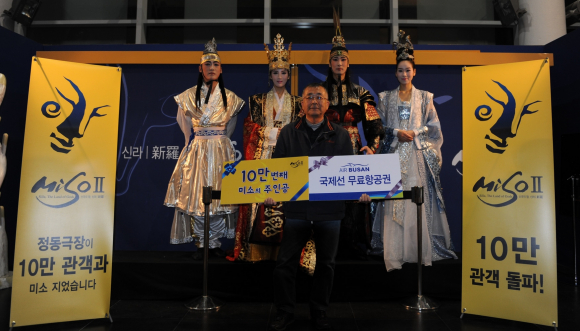 (재)명동․정동극장(극장장 최정임)의 경주브랜드공연 <미소2-신국의 땅, 신라>(이하 ‘미소2’)가 11월 17일 토요일을 기점으로 누적 관람객 10만을 돌파했다. 이는 2011년 7월 1일 공연 개막 이후 14개월 만에 이룬 성과다.