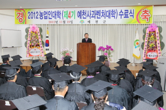 2012년도 제4기 김천시농업인대학은 과수분야 전문가(농촌진흥청, 대학, 연구소 등)를 강사로 초빙하거나 자체강사를 활용해 총 25주, 112시간의 일정으로 55명(포도 37명, 자두 18명)이 수료했다 .