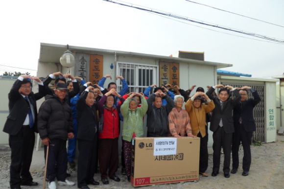 |  | | | ⓒ GBN 경북방송 | | 한편 포스코PCP봉사단은 이날 행사 후 마을 어르신들이 공동으로 생활하는 송도동 23통 경로당 및 흥해읍 오도경로당을 찾아 42인치 TV 2대(260만원 상당)를 전달해 어르신들이 건전하게 여가선용을 보낼 수 있도록 배려했으며, 기업인들의 사회적 나눔 문화확산과 이웃돕기 사랑 실천 공로를 인정받아 2012년 포항MBC 삼일문화대상 본상에 선정된 바 있다.