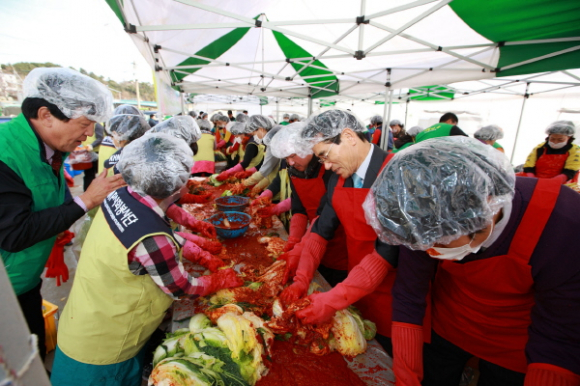 울진군새마을회(회장 남홍규)는 한수원(주)울진원자력본부와 공동 주관으로 11월 19일부터 11월 21일까지 죽변면 해군부대옆 광장에서 지역에 소외되고, 어려운 이웃을 위해 김장 2,000포기를 담구는 봉사활동을 실시했다.