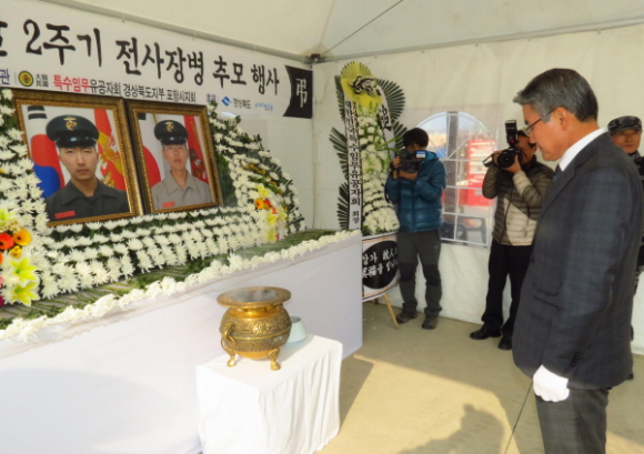 북한 연평도 포격 도발 2주년을 맞아 희생장병을 추모하는 행사가 포항에서 열렸다.