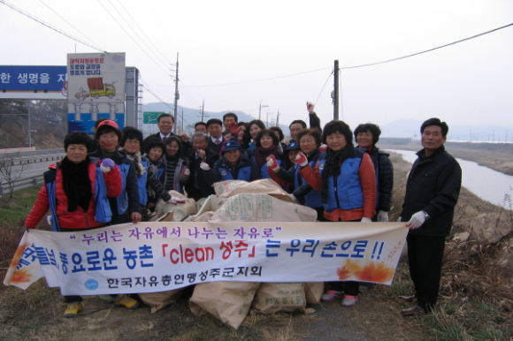 한국자유총연맹 성주군지회(회장 박병호) 회원 40여명이 11월23일 선남면 도성리 백천 일원에서 「Clean 성주 만들기」캠페인을 전개하고 태풍 “산바”로 인해 하천 및 제방에 널려 있는 비닐 등 농업부산물 및 생활 쓰레기를 수거하는 환경대청결 활동을 전개했다.