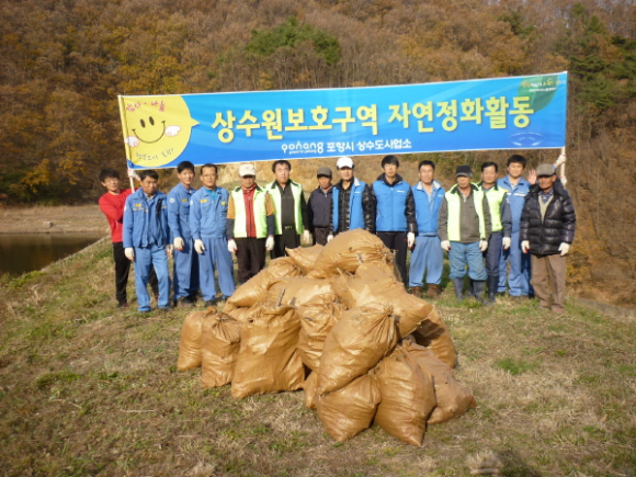 포항시 상수도사업소(소장 손수익)는 22일 상수원보호구역 지킴이(주. 포웰), 공무원, 청원경찰, 공익근무요원 등 약 80여명이 참여한 가운데 눌태지 상수원보호구역에서 환경정화 활동을 실시했다.