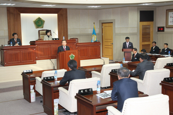 이 군수는 내년도 군정 운영을 위해 군의회에 제출한 2013년도 예산안은 금년보다 12.7% 증가한 3,175억원으로 지역개발과 농가 소득증대, 군민복지 분야 등에 균형을 유지하면서 생산적인 예산 편성 운영으로 지방채 조기 상환과 지방 재정 건전화에 최선을 다하겠다고 밝혔다. |