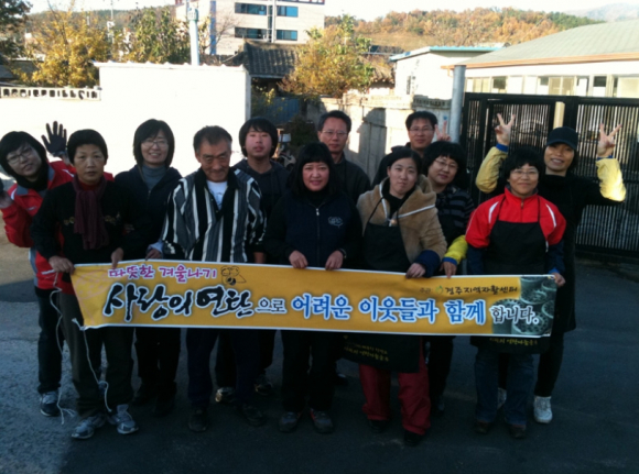 |  | | | ⓒ GBN 경북방송 | | 주 관 : (사)따뜻한 한반도 사랑의 연탄 나눔 운동 경주지부 주 최 : 경주지역자활센터, 경주시 후 원 : 경주자활센터, 경북관광개발공사, 대구은행 경주영업부, 한국전력 경주지점, 농협경주시지부, 화랑회, 경주시건축사협회, 내남청년회, 서면청년회, 경주약사회, 오리씽크, 대한문총판, gj하우징, 희망주유소, 현대자동차 성동점, 경주PVC, 영춘공구, 경주타일, 경동보일러