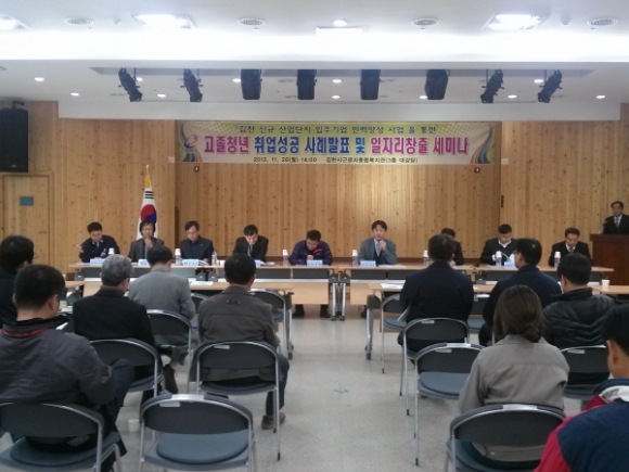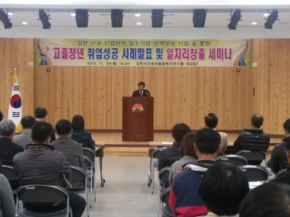 김천 신규산업단지 입주기업 인력양성팀은 지난 26일 오후 2시에 근로자종합복지관에서 100여명이 참석한 가운데「고졸청년 취업성공 사례발표 및 일자리창출 세미나」를 개최했다.