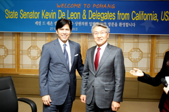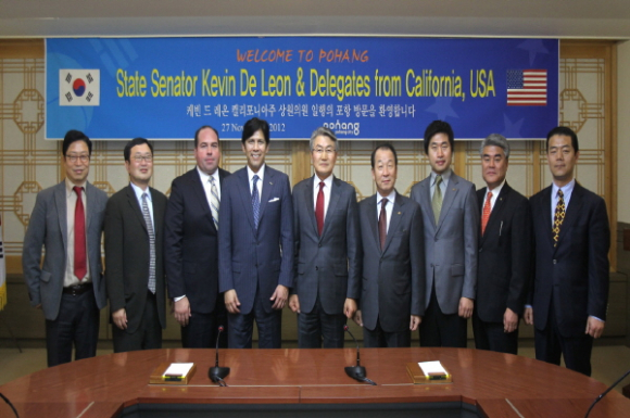 미국 캘리포니아 주(州) 케빈 드 레온(Kevin De Leon) 상원의원과 로스엔젤레스(LA)시 배무한 한인회장 등 일행 11명이 27일 양 도시간의 우호협력 증진을 위해 포항시를 방문했다 .