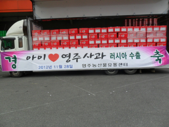 영주시에서는 금년산 아이영주사과 7톤을 러시아에 수출하기 위해 11월 28일 선적하게 됨으로서 수출 다변화 길의 발판을 구축하게 되었다.