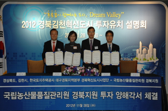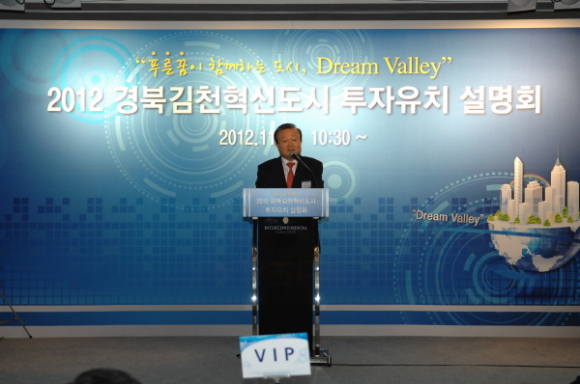 경상북도와 김천시는 경북김천혁신도시 기반공사 공정율 95%의 성과를 기록하면서 혁신도시 클러스터부지에 우수한 기업을 유치하기 위해 투자유치 설명회를 11월 28일 서울 코엑스 인터컨티넬호텔에서 개최했다.