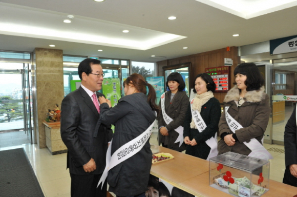 시에서는 시장을 비롯한 전 공무원이 나눔캠페인 활동에 솔선 참여하고 홍보를 위해 12월 4일 출근시「사랑의 열매 달아주기」행사를 펴 성금을 모금할 계획이다. |