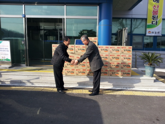 어모면 중왕교회 (목사 신성용)에서는 2012년 연말을 맞아 관내 어려운 이웃에게 전달할 라면 30박스를 면사무소를 방문 기증했다.