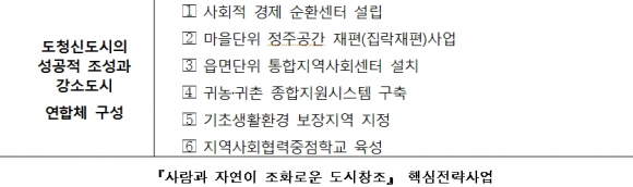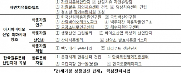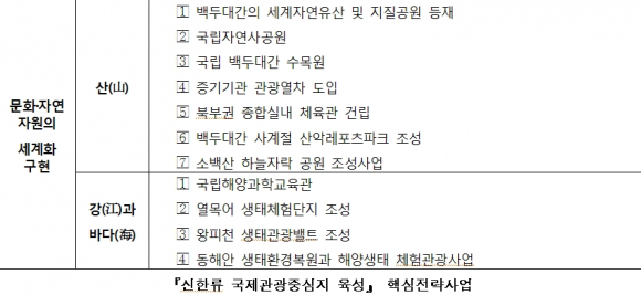 3대 프로젝트에 따른 세부사업 한편 3대 프로젝트로에 따른 단위 세부사업들은 아래와 같다. 세부사업들은 각각의 권역들이 보유하고 있는 지역의 특성자원을 중심으로 작성했다.