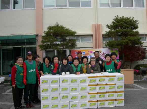 가흥1동 새마을부녀회 회원들은 11월 27일과 28일 양일에 걸쳐 저소득층과 독거노인 등 가흥1동 관내 100여 가구에 김장김치 10kg씩 전달했다. 이를 위해 부녀회는 쌀쌀한 날씨에도 불구하고 11월 24일과 25일 양일간 350포기의 배추를 담궜다. 김장김치 재료로 쓰인 배추 제공에는 홍기수 가흥1동 통장협의회장도 힘을 보탠 것으로 알려졌다.