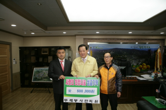 성주의 작은 봉사모임 “두레봉사단”(회장:배우호)이『희망 2013』이웃돕기 성금으로 50만원을 성주군에 기탁했다.