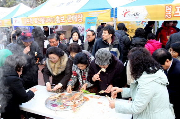포항시는 11월30일과 12월1일 양일간 서울 서초구청 광장에서 포항의 대표적인 겨울철 특산품인 과메기, 대게를 비롯해 오징어, 문어, 물회 등 수산물 판매 및 홍보행사를 가졌다.