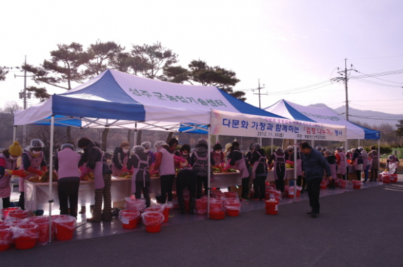 생활개선성주군연합회(회장 조수정)는 행복한 농촌가정육성 프로젝트 사업의 일환으로 11월 30일 50여명의 생활개선회원과 다문화 가정이 함께 『김장 나누기』행사를 농업기술센터 전정에서 가졌다.