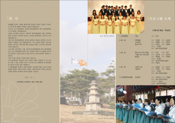 문화법회는 삼귀의, 축사, 합창 공연, 사홍서원 등으로 진행될 예정이며 이번 합창 공연은 박상진 한국음악과 교수가 진행하며 동국국악예술단의 국악관현악 ‘고별’ 연주를 시작으로 동국대 경주캠퍼스 정각원 신도들로 구성된 ‘정각원 한마음 합창단’과 재학생들로 구성된 ‘동국 한마음 합창단’의 공연이 1시간 30여분동안 펼쳐질 예정이다.
