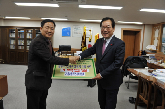 가흥2동 주민자치위원회(위원장 노경준)는 12월 4일 영주시 인재육성장학회를 방문해 장학금을 1백만원을 기탁했다.