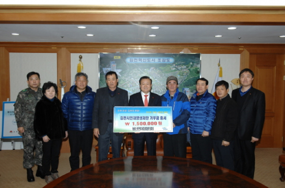 |  | | | ⓒ GBN 경북방송 | | 또한, 2012년도 주민정보이용센터 인터넷 선생님이 회비 중 일정금액을 갹출해 18만 5천원을 김천시인재양성재단에 기탁했다.