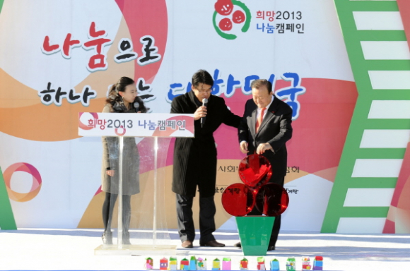 김천시(시장 박보생)는 지난 10월 5일부터 7일까지 김천종합스포츠타운에서 개최된 ‘제3회 경상북도 평생학습축제`시 ’도내 기관․단체장 기증품 알뜰벼룩시장‘에서 판매된 판매수익금 전액 1,219,000원을 10일 연말연시 불우이웃돕기 ’희망 2013 나눔 캠페인‘ 모금행사시 시청 전정에서 박보생 김천시장이 참여기관 대표로 경북사회복지공동모금회에 전달했다.