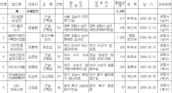 포항시, 지방세 3천만원 이상 고액 체납자 명단 공개