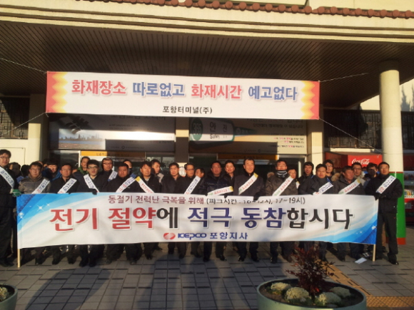 시는 11일 포항시외버스터미널에서 포항시, 한국전력공사 포항지사를 비롯해 에너지 관련 기관단체 60명이 ‘겨울철 에너지절약 캠페인’을 개최하고 에너지 절약에 총력전을 펼치기로 했다.