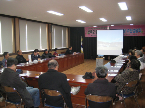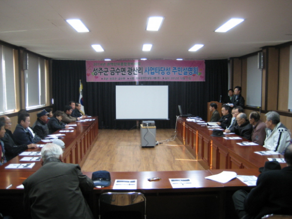 『2014년 권역단위 종합정비사업』 금수면 광산리 권역 사업 타당성 주민 설명회를 12월 11일(화) 14시 금수면사무소 회의실에서 금수면장, 이수경 군의원, 군관계자 및 지역주민 30여명이 참석한 가운데 개최했다.