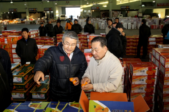 박승호 포항시장, ‘딸랑딸랑’ 요령 흔들며 감귤 사이소!