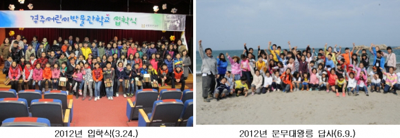 1년 간의 수업은 우리의 역사와 박물관과 관련된 여러 주제의 강의식 수업이 중심을 이루었습니다. 그리고 대릉원 ․ 문무대왕릉 ․ 남산 답사, 민화 그리기, 금관 ․ 토우 만들기 등 다양한 체험을 하면서 우리 문화를 자연스럽게 배웠습니다. 이번 수료식에서는 1년 간 충실히 수업에 참여한 전민성(용황초 6) 어린이가 최우수상인 ‘으뜸상’을 받게 되었고, 이 외에도 많은 학생들이 ‘버금상’, ‘공예상’, ‘꿈나무상’ 등을 받을 예정입니다.