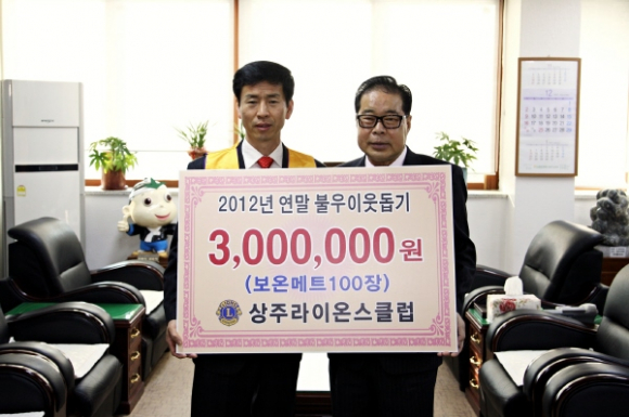 지역의 봉사단체인 상주라이온스협회(협회장 안광석)에서는 12월 13일 회원들의 정성으로 마련한 성금 300만원으로 관내 어려운 이웃의 집수리사업을 실시하고 보온매트 100개를 구입해 상주시에 기탁해 미담이 되고 있다.