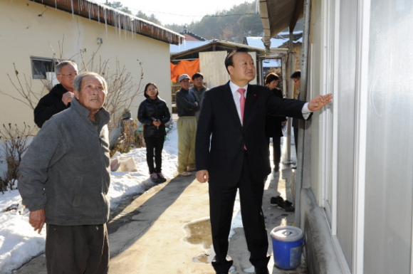박보생 김천시장은 12월 13일 집수리 시행중인 가정과 집수리가 완료된 가구를 직접 둘러보고 불편한 점은 없는지 집수리가 완벽하게 됐는지 일일이 꼼꼼히 살펴보고 주민들을 위로 격려했다.
