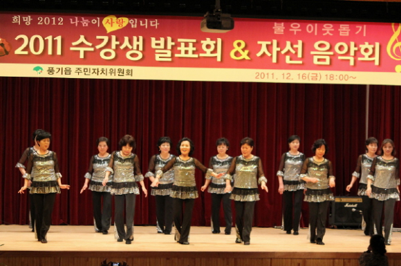 주변의 불우한 이웃들을 다시 한 번 되돌아보게 되는 추운 연말, 2012수강생발표회 및 자선음악회가 풍기읍주민자치위원회(위원장 이상호) 주관으로 21일(금) 오후 6시부터 풍기읍주민자치센터 2층에서 열린다.