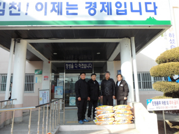 김천시청 환경관리과에 근무하는 환경미화원 10명으로 구성된 자원봉사단체인 “작은사랑모임회”(회장 최상진)에서 12월 20일(목) 14:00경 지좌동에 거주하는 불우한 독거노인 및 저소득층에 따뜻한 겨울을 보낼 수 있도록 온정의 백미(20Kg) 10포대를 지좌동장에게 전달했다.