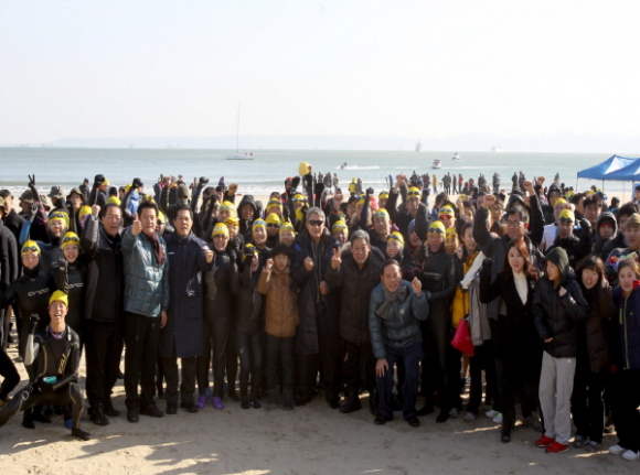 영하의 날씨에도 불구 겨울바다 정복, 200m 완주