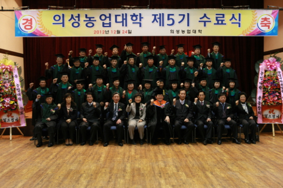 의성군(군수 : 김복규)은 12월 24일 14:00시 의성군농업기술센터 1층 대강당에서 수료생 120명과 가족 및 각급기관 단체장등 300여명이 참석한 가운데 의성농업대학 제5기 수료식을 가졌다.