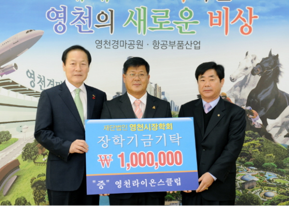 영천라이온스클럽은 1974년 창립해 장학기금 기탁은 물론 평소에 무의탁노인, 소년소녀가정 및 불우이웃돕기 등에 힘쓰며 지역을 위해 봉사정신을 갖고 많은 활동을 하고 있다. 이날 장학기금 기탁과 함께 이웃돕기 성금도 기탁해 지역봉사단체로서 모범이 되고 있다.