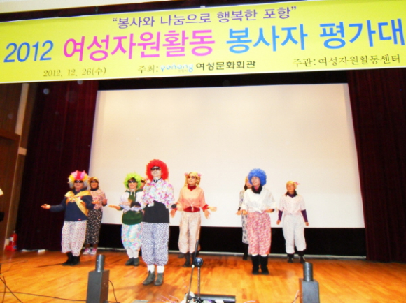 포항시 여성문화회관(관장 김완수)에서는 26일 여성자원활동센터 회장 이취임식 및 2012 연말평가대회를 가졌다.