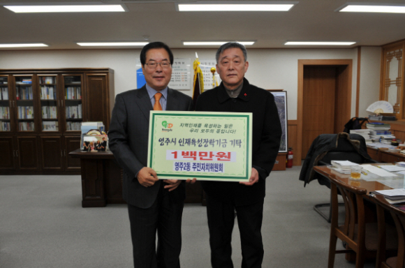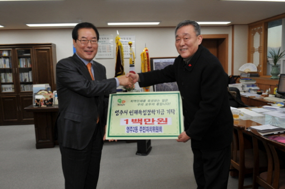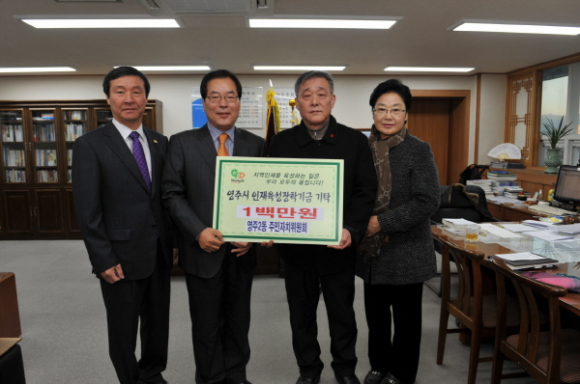 영주2동 주민자치위원회 영주시에 인재육성장학금 1백만원 기탁 영주시청 사회복지과 영주시에 인재육성장학금 2백만원 기탁