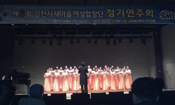 김천시새마을여성합창단(단장 이영희)은 12월 27일 오후 7시 김천예술고등학교 정산아트홀에서 박보생 김천시장을 비롯한 내외귀빈과 임영수회장 등 새마을운동 관련 단체장, 새마을가족, 시민 등 500여명이 참석한 가운데 제3회 연주회를 개최 했다.
