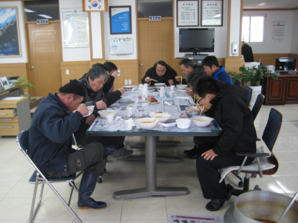 이에 광산1리 여상훈 리장은 아침 참으로 라면 30봉과 만두를 직접 면사무소에 솥을 걸어 따뜻한 라면국물을 한 그릇 담아 직원들에게 감사의 표시를 하여 고된 제설작업에 훈훈한 정을 주어 더욱 힘을 주었다.